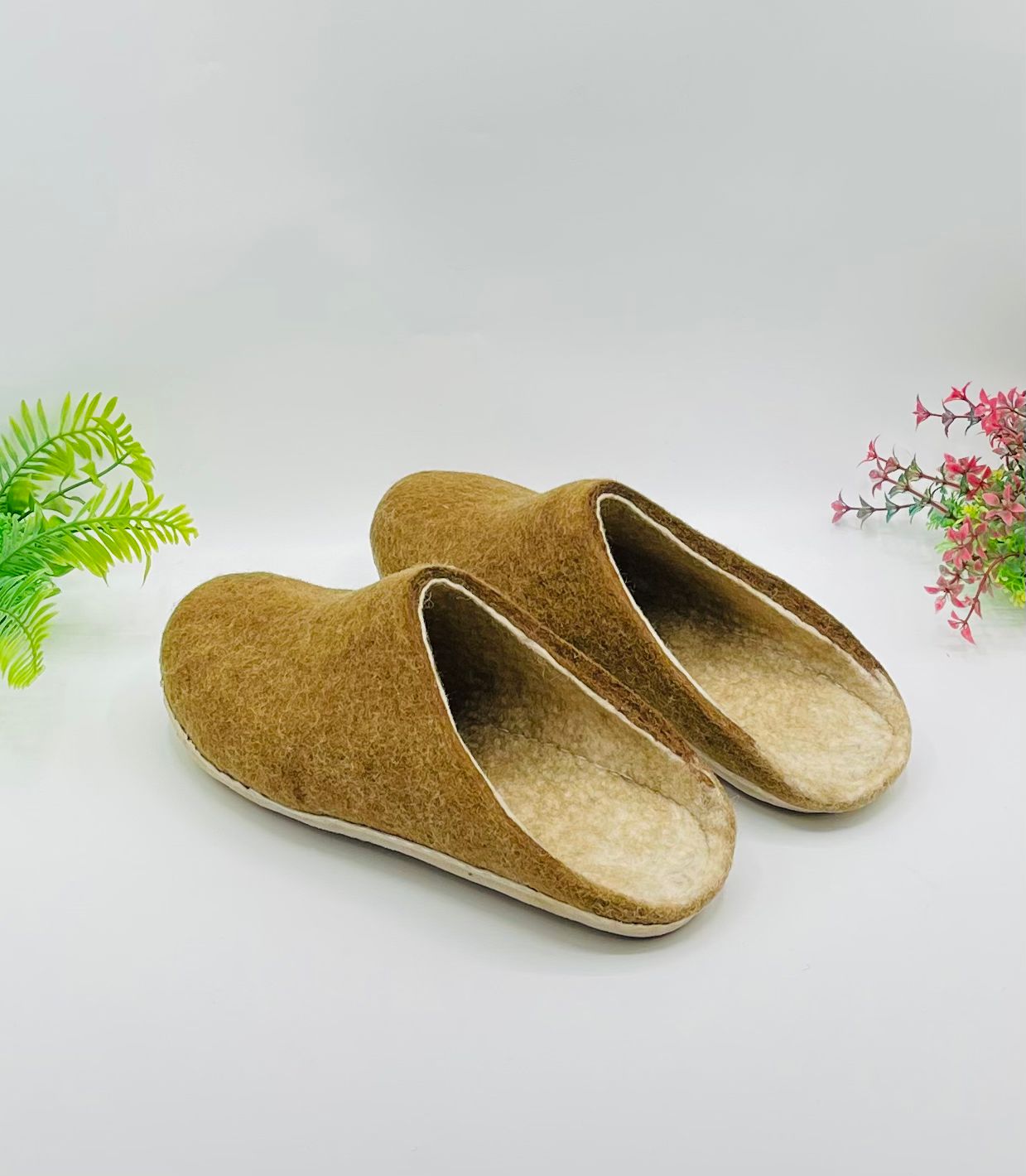 Introducing our handmade felt slippers, made from 100% pure wool. These slippers are non-toxic, non-allergic, and AZO-free, ensuring safety and comfort. They are crafted in Nepal by dedicated artisans, reflecting superior craftsmanship.